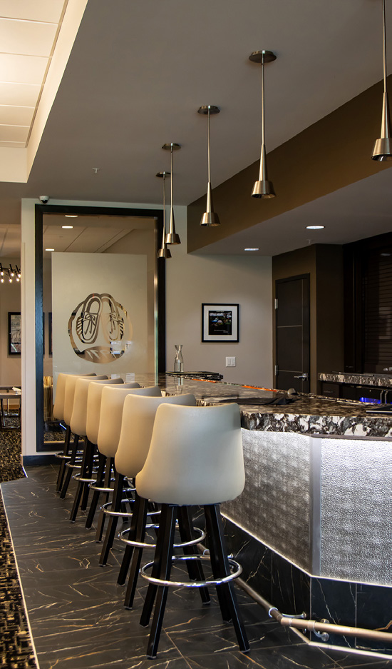 Shortridge Studio – This multi-purpose and golf simulator room has two sims for year-round enjoyment. In addition, this space can be quickly converted over to a private party room. Perfect for intimate meetings, private dinners, birthday parties, or even use half the space for your group function and the other half can remain a simulator to add some fun. The Shortridge Studio is named after Moccasin Creek’s first golf professional, Dean Shortridge. This South Dakota Golf Hall of Fame member retired in the mid-1980’s but remained a fixture at the Club offering golf tips to the members and sage advice to the golf operations team. He was a legend in the community and the golf world around the state and had a major impact on the first several decades of Prairiewood/Moccasin Creek. Dean passed away in 2012 at the age of 87, but his legacy lives on with our current PGA professionals.