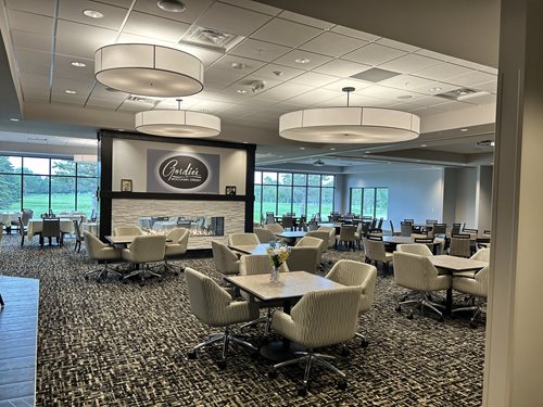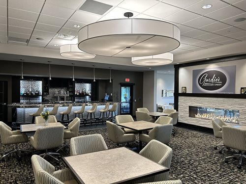 April 15, 2023 Update The Kitchen is open and serving food in the Maddox with a new Maddox menu! The golf simulators are busy and the Golf Shop millwork is starting to be installed. Within the week the Shop will be able to fully display all the merchandise that has already arrived. The upper level contruction is coming along very well and we anticipate to fully have all spaces open before the end of the April. This week the carpet will be installed, restrooms completed, offices opened, and cleanup finished. The view from the new dining and banquet space is wonderful and we are excited to reveal a completed interior to the members. After opening there will still be work to be done on the service elevator, basement storage, and of course the exterior of the clubhouse. This winter did not allow for timely work on the exterior. Please excuse our mess outside as the crew works diligently to bring out a new and exciting look to our 50+ year old clubhouse. ALL OF THESE NEW AREAS OF THE CLUBHOUSE HAVE BEEN REBRANDED. CLICK HERE TO LEARN MORE ABOUT GORDIES at Moccasin Creek, the MADDOX, OERTLI & FOUNDERS ROOMS, and the SHORTRIDGE STUDIO.